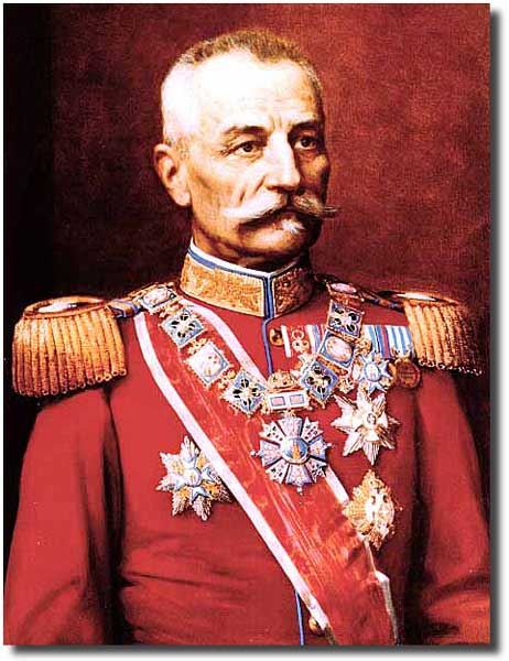 Petar I. Karadjordjevic. Nach Auflösung der österreichisch-ungarischen Monarchie wird am 1. Dezember 1918 das von Petar I. regierte "Vereinigte Königreich der Serben, Kroaten und Slowenen" - "SHS" gegründet. King Petar I. Karadjordjevic www.gottschee.de |